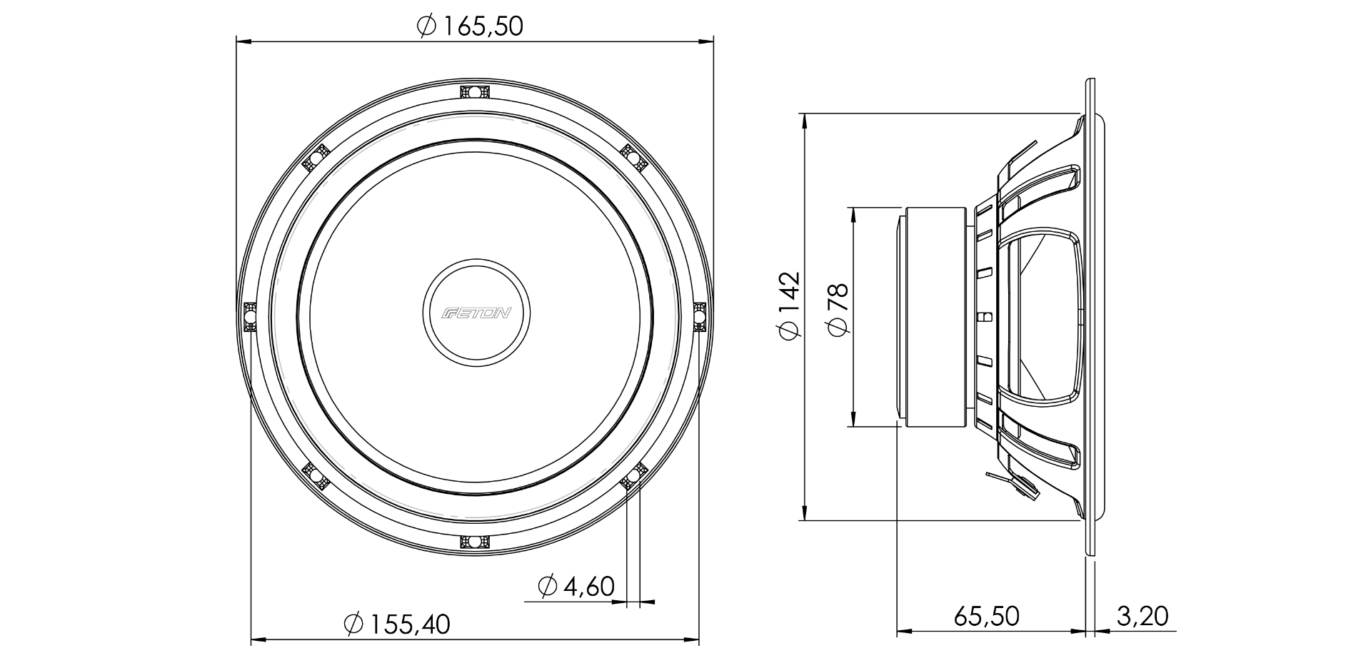 PRA16 - 2-х полосная компонентная система, 165 мм (6,5")Почувствуйте более высокий уровень звука в начальном классе благодаря новейшей технологии конуса PRA! Ребристый конус из бумаги и стекловолокна является подлинным открытием и новым шагом ETON в разработке конусов. Он отличается легкостью и жест