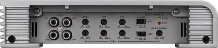 Усилитель, 4 / 3 / 2 канала Мощность RMS 4 Ом / 2 Ом / 1 Ом, Вт: 4х90 / 4x130 / - Мощность RMS в мост. режиме 4 Ом/ 2 Ом, Вт: 2х320 / - Габариты, мм: 230/53/396