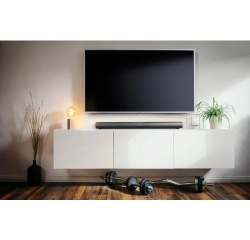 Содержание упаковки: саундбар, кабель питания, пульт дистанционного управления, включая батарею, 2xкронштейн, руководство по эксплуатации