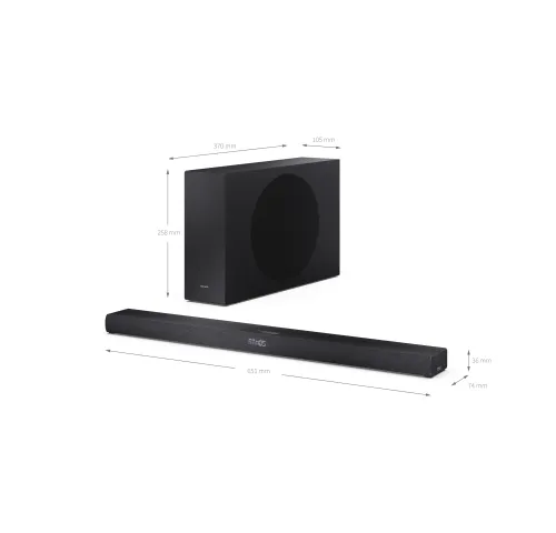 - Размеры саундбара: 651 × 36 × 73.4 мм