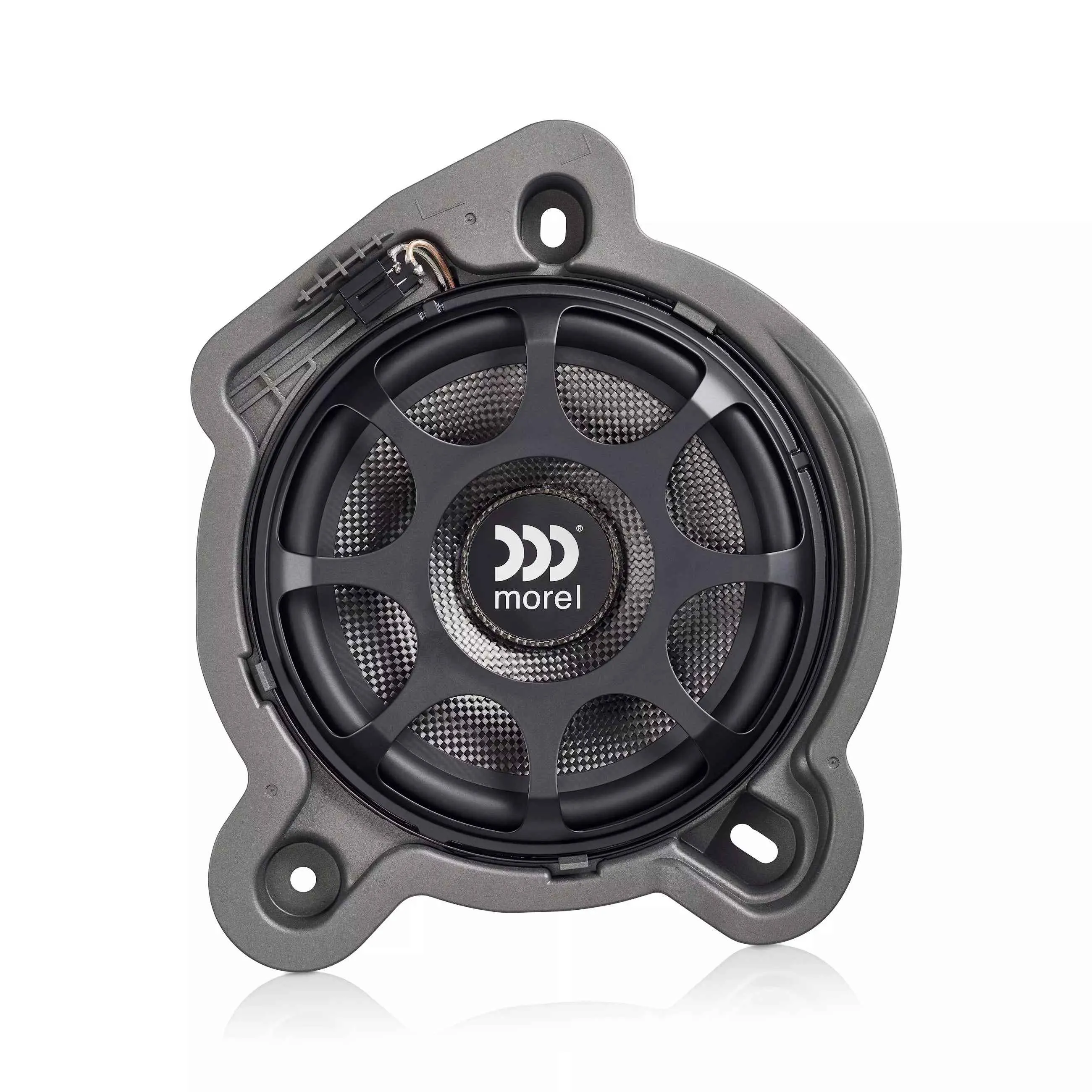 Morel IP-MBZSUB82-2L — ультратонкий 8-дюймовый сабвуфер, разработанный как штатная замена акустики для автомобилей Mercedes‑Benz с учётом заводских размеров и креплений. Благодаря углеродному диффузору, мощному неодимовому магниту и технологии EVC™ он легко помещается в штатное место под передним пассажирским сиденьем или в нише пола, не теряя при этом басовой мощности и глубины звучания. Сабвуфер сочетает компактность и акустическую эффективность, обеспечивая плотный, контролируемый бас даже при минимальном пространстве.