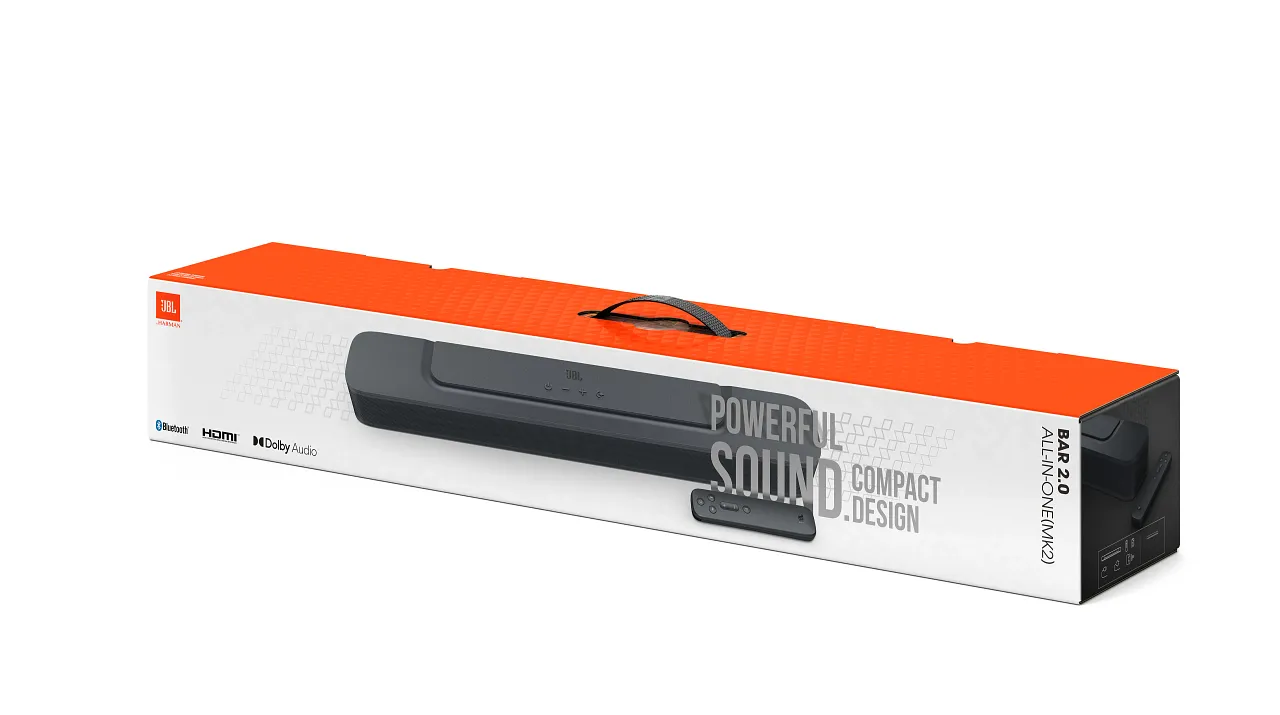 ОписаниеНасыщенные низкие частотыПрочувствуйте драматизм напряженного триллера, ощутите всем телом рев своей команды или расслабьтесь под последний альбом любимого исполнителя. Модель JBL Bar 2.0 All-in-One является по-настоящему универсальной и создает насыщенные низкие частоты для фильмов и музыки.Окружите себя сочным звукомТехнология JBL Surround Sound вдыхает жизнь в фильмы, музыку и спортивные трансляции. Выведите на новый уровень звучание своего телевизора без лишних проводов и колонок.Посетите кинотеатр, не вставая с диванаКинотеатр у вас дома. Встроенная технология Dolby Digital подарит вам полноценные ощущения от посещения кинотеатра в комфорте вашей гостиной.Потоковая передачаНе в настроении смотреть кино? Без проблем. С панелью JBL Bar 2.0 All-in-One вы также можете получать удовольствие от беспроводной потоковой передачи музыки по Bluetooth с мобильного телефона или планшета.Компактная конструкцияБлагодаря компактному дизайну панель JBL Bar 2.0 All-in-One без проблем впишется в вашу жизнь и в интерьер вашей гостиной.Установите соединениеАктивировать технологию JBL Surround Sound никогда еще не было так просто. Соединение при помощи кабеля HDMI ARC или оптического кабеля совсем несложно установить и еще проще использовать.