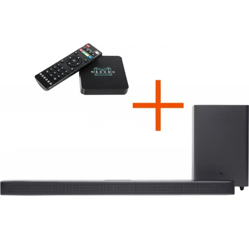 Комплект JBL Bar 2.1 и MEGOGO Smart TV mediaplayer не только погрузит вашу гостинную в звук целиком, но одновременно и расширит возможности просмотра видео.Саундбар JBL Bar 2.1 Deep Bass превратит вашу гостиную в кинотеатр. Компактный JBL Bar 2.1 Deep Bass выдает 300 Вт невероятного фирменного звука