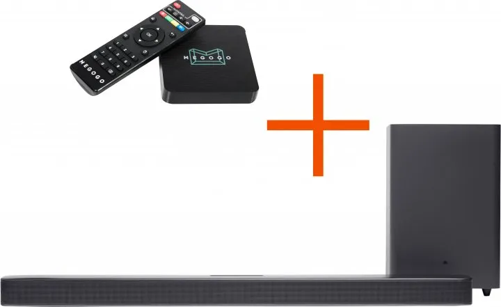 Комплект JBL Bar 2.1 и MEGOGO Smart TV mediaplayer не только погрузит вашу гостинную в звук целиком, но одновременно и расширит возможности просмотра видео.