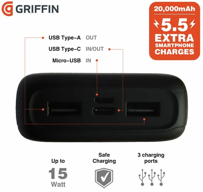 - Наименование: Charge 5 + Griffin 20000 mAh