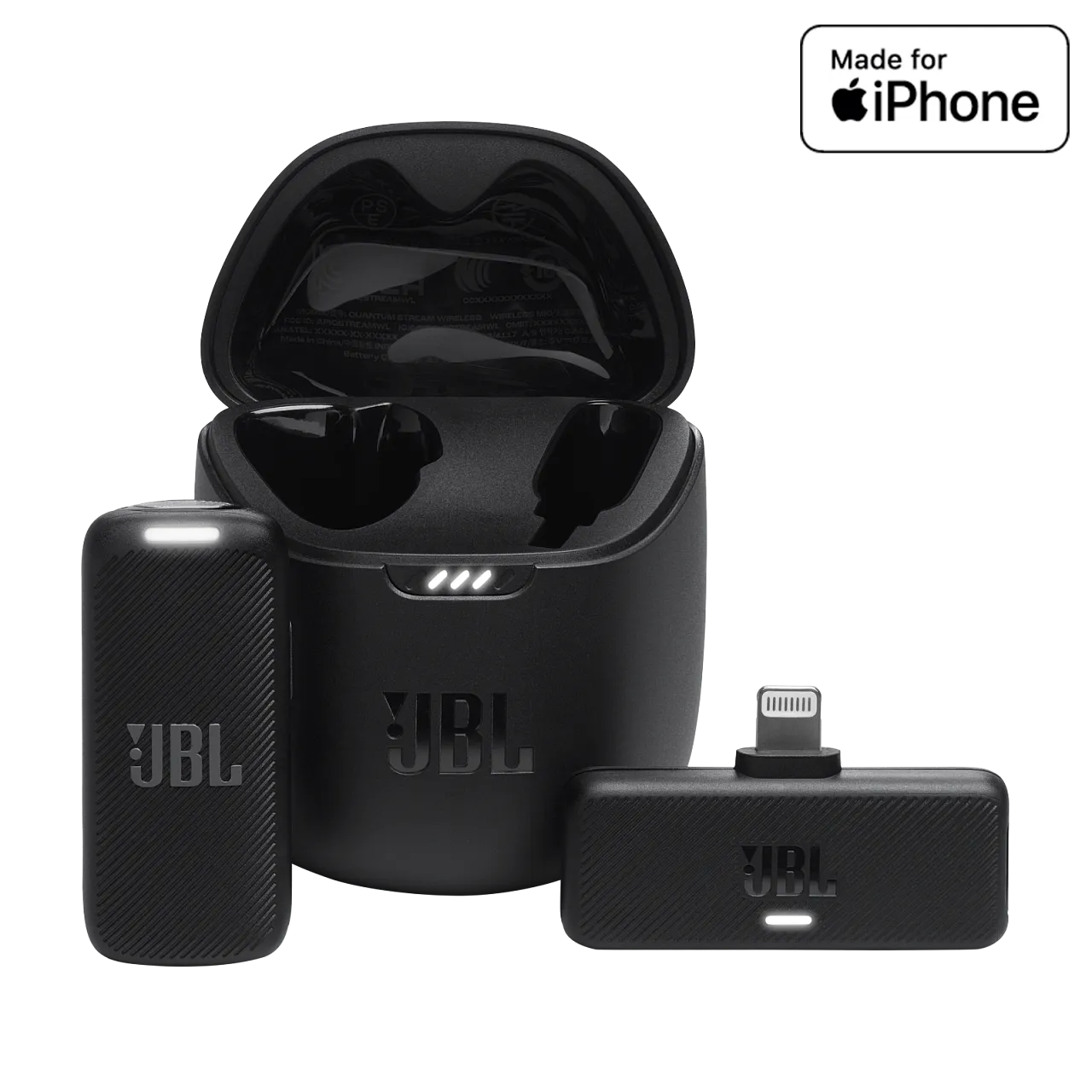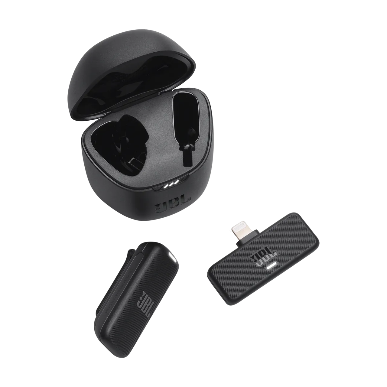 ОписаниеГотов из коробкиВставьте 2.4GHz беспроводной донгл Low Latency Wireless Lightning прямо в ваше Apple устройство, и вы подключены. Это так просто. И можете смело удалиться от вашего устройства, ведь у вас есть 100 метров диапазона передачи.Кристально чистые записиМожете быть уверены, что ваш голос будет четким и выразительным вне зависимости от ветра и шума. Всенаправленный характер захвата с регулируемым шумоподавлением внешней среды позволяет получить четкие записи, с или без, фоновых звуков.Регулируемое усиление микрофонаУвеличьте или уменьшайте громкость голоса, который идет в микрофон с помощью приложения JBL Headphones, и ваши записи будут звучать отлично, независимо от того, записываете ли вы в библиотеке или на футбольном поле.24 часа времени записи, плюс быстрая зарядкаСовершайте записи или трансляции беспроводно до 6 часов и получите еще 18 часов от зарядного кейса. Если вам нужно срочно, 15-минутная зарядка прибавит вам еще 1 час записи.Настройки с помощью приложения JBL HeadphonesПриложение JBL Headphones персонализирует ваш опыт записи для вас. Легко настройте ЭК, усиление, шумоподавление, таймер автоматического выключения, яркость светодиодов и многое другое прямо из вашего Apple устройства.Ветрозащитный экран для понижения шумаОпционный ветрозащитный экран, легко крепящийся на ходу, обеспечивает кристально чистые записи на улице.Надежные записиВы всегда будете знать, когда вы подключены, когда идет запись, и когда нужно зарядить батарею, благодаря индикаторам состояния на микрофоне и кейсе. Вы также можете уменьшить яркость светодиодных ламп в условиях слабого освещения, используя приложение JBL Headphones.Заряжание во время трансляцииВы легко можете заряжать ваше Apple устройство во время трансляции, используя дополнительный USB-C порт в донгли.