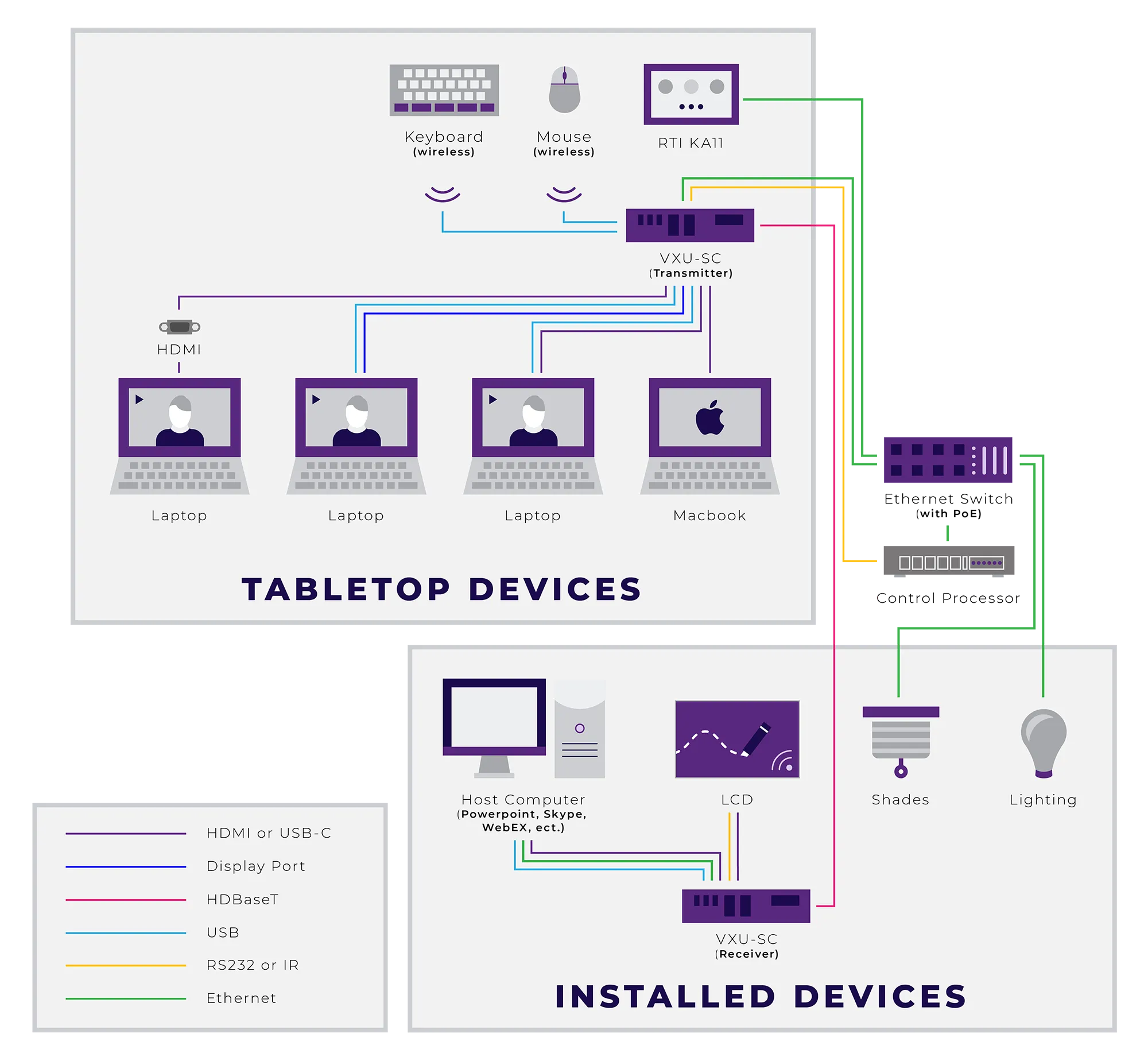 Легко установить с помощью прилагаемого настенного кронштейна или дополнительной подставки для настольной установки. Кроме того, для питания устройства и обеспечения управления через экосистему RTI требуется только один кабель Cat-5/6, подключенный к Ethernet.