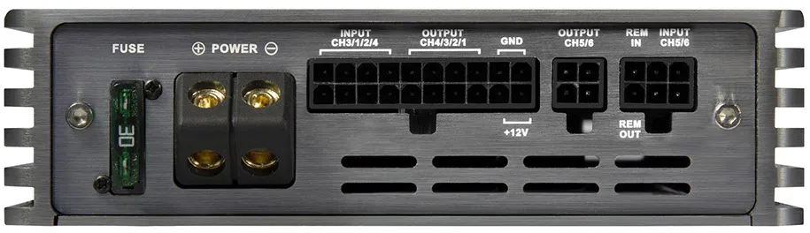 Модель M6, безусловно, можно рассматривать как новую веху в создании усилителей. Трудно себе представить, чтобы полноценный усилитель класса D работал в этом маленьком корпусе с шестью попарно подключаемыми мостовыми выходами, каждый со среднеквадратичной мощностью 105 Вт на канал (при 2 Ом). Всего доступно 630 Вт RMS. Компактные размеры стали возможными благодаря тщательно продуманной 4-слойной ламинированной плате, которая также эффективно подавляет электромагнитные помехи благодаря благоприятной топологии — обязательное условие, особенно для полнодиапазонных усилителей класса D.