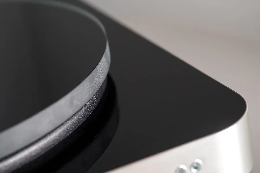Проигрыватель виниловых пластинок, алюминиевый тонарм, пассиковый привод, опорный диск из специального стекла весом 2,6 кг, регулировка скорости 33; 45 об/мин, ММ-картридж Audio-Technica AT95.