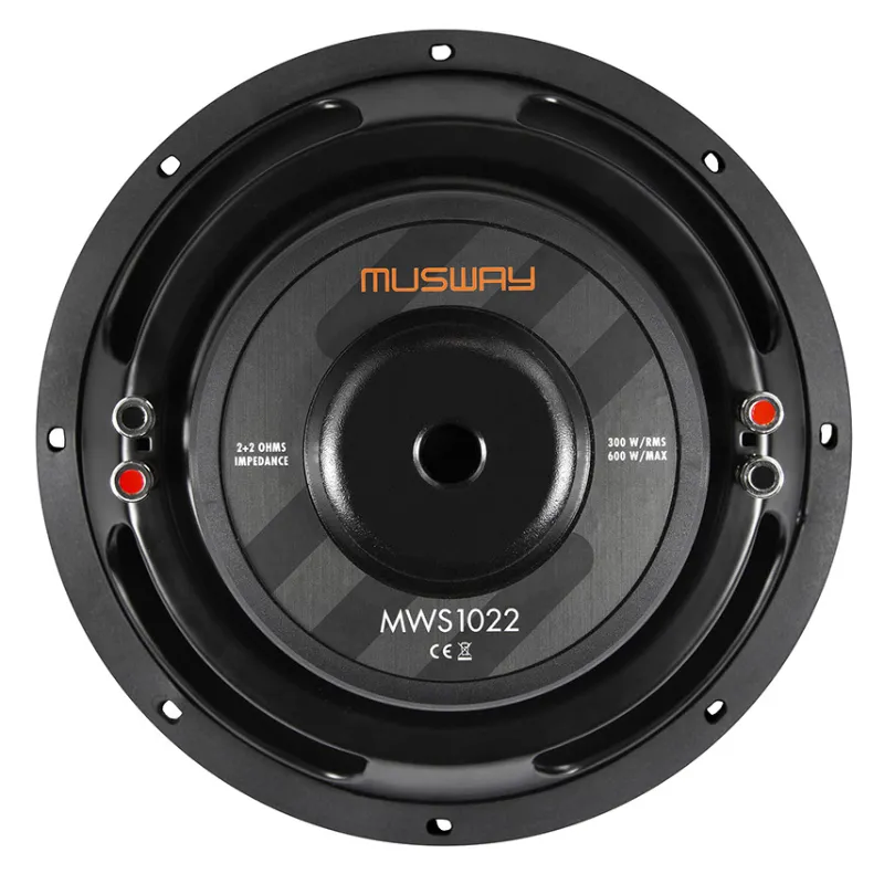 ОписаниеMusway MWS1022 - 10" сабвуфер с плоским корпусом, мощностью 300 Вт RMSMusway MWS1022 – это высококачественный 10-дюймовый сабвуфер с плоским дизайном, созданный специально для установки в местах с ограниченным пространством. Благодаря сочетанию инженерной точности, современных материалов и впечатляющих технических характеристик, эта модель предлагает мощное и глубокое басовое звучание без компромиссов качества или надежности.Корпус сабвуфера отличается ультратонкой конструкцией, что делает его идеальным для установки в пол багажника, под сиденье или нестандартные монтажные ниши. Мембрана изготовлена из сверхпрочного композита, сочетающего стекловолокно и карбон – такой материал обеспечивает не только жесткость, но и легкость конструкции, позволяя динамику сохранять точность даже при интенсивных звуковых нагрузках.Особое внимание инженеры Musway уделили магнитной системе и звуковой катушке. Мощный магнит весом 1,27 кг (45 унций) в сочетании с 50-миллиметровой катушкой (2") и симметричным двойным обматыванием 2 + 2 Ом гарантирует высокую эффективность и стабильную работу даже в самых динамичных музыкальных моментах. глубокие низкие частоты с ощутимой силой и контролем.Модель имеет отличный частотный диапазон и гармонично дополняет любую автомобильную аудиосистему вне зависимости от ее конфигурации. А встроенная качественная подвесная система и прочная стальная корзина обеспечивают долговечность и стойкость к вибрациям.Особенности:Ультратонкий корпус для установки в узкие монтажные пространстваМембрана из композита стекловолокна и карбона для максимальной жесткости и легкостиМощный 45-унциевый (1,27 кг) магнит для стабильного и динамического звучанияЗвуковая катушка диаметром 50 мм (2") с двойной обмоткой 2+2 ОмОчень большой ход диффузора: ±15 ммНадежная стальная корзина и резиновый подвесПростой монтаж в комплекте монтажные материалыВысокая эффективность даже при умеренной мощности усилителя