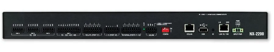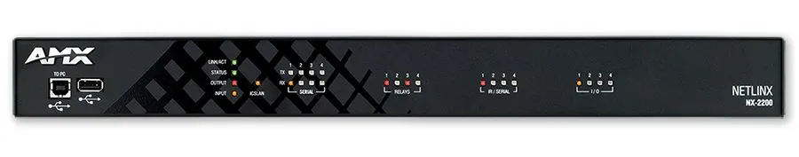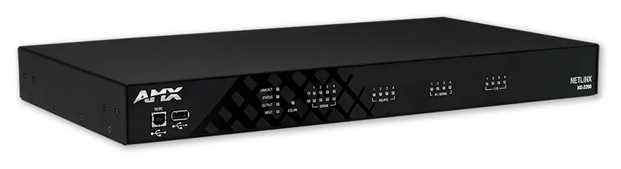 AMX NX-2200 - сетевой контроллер NetLinx NX с 512 МБ ОЗУ, процессором 1600 MIPS, 8 ГБ флэш-памяти, 4 последовательными портам, 4 ИК-портами, 4 портами ввода-вывода, 4 реле, IPv6 и двойным сетевым адаптером.