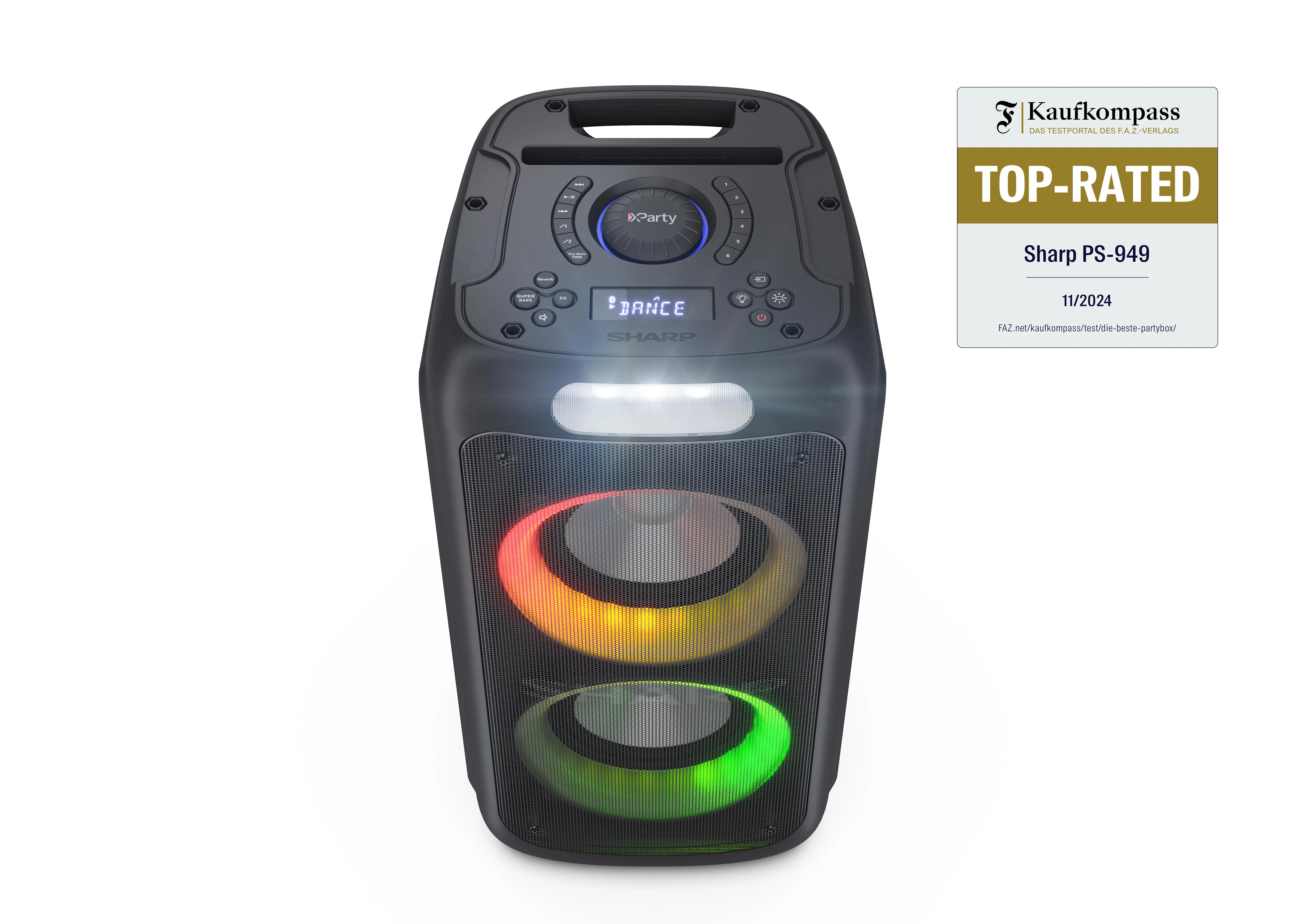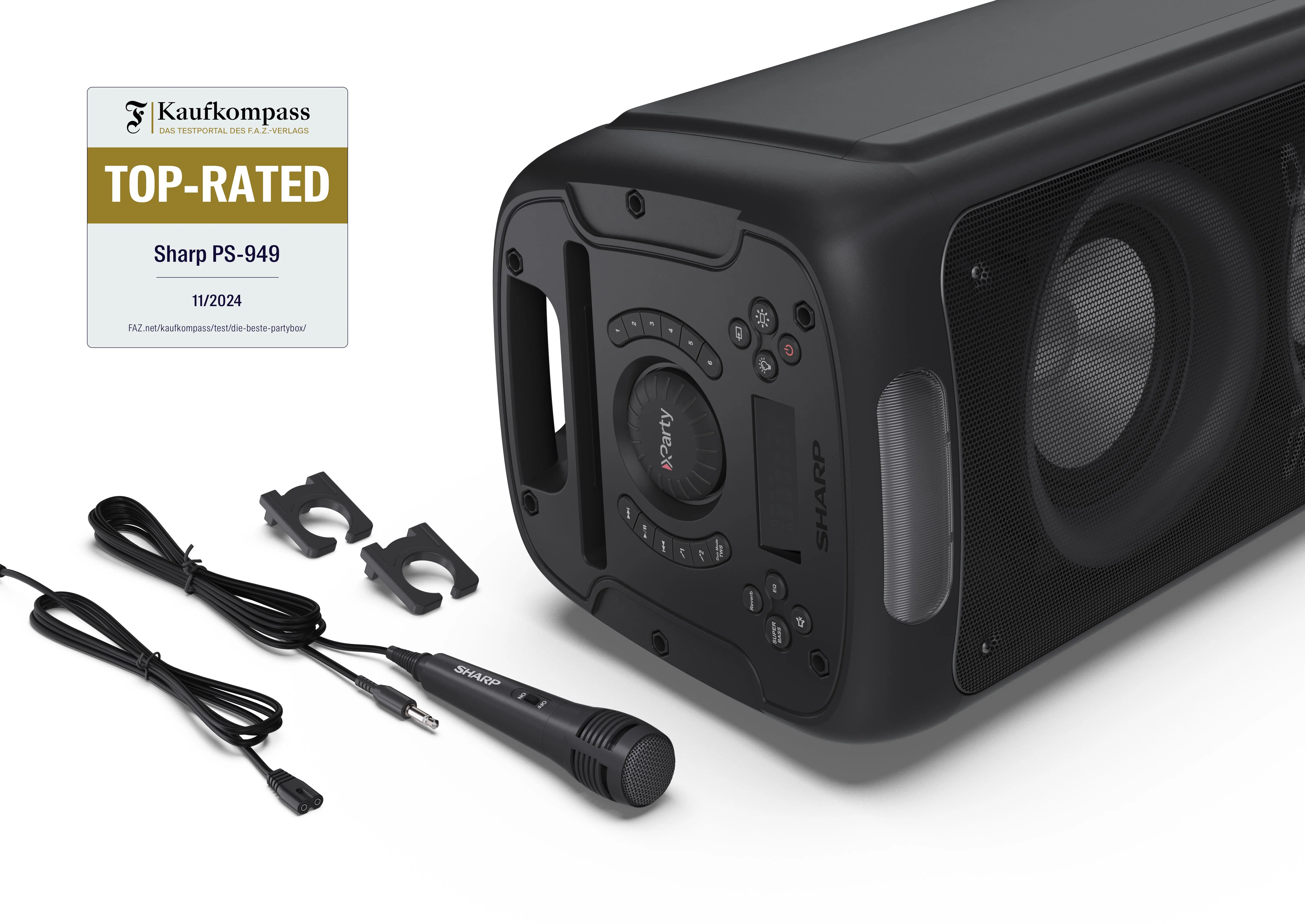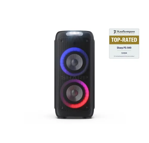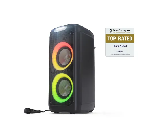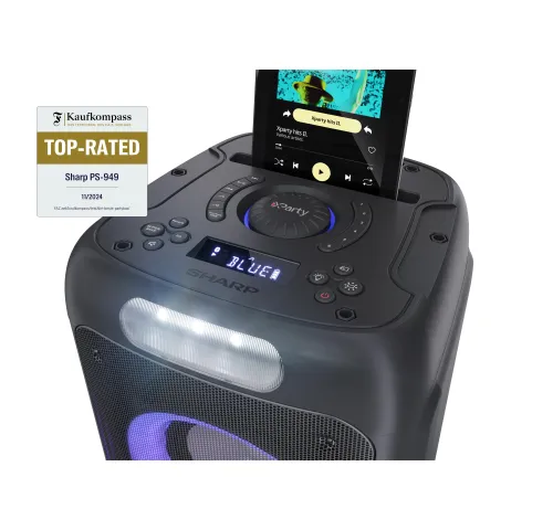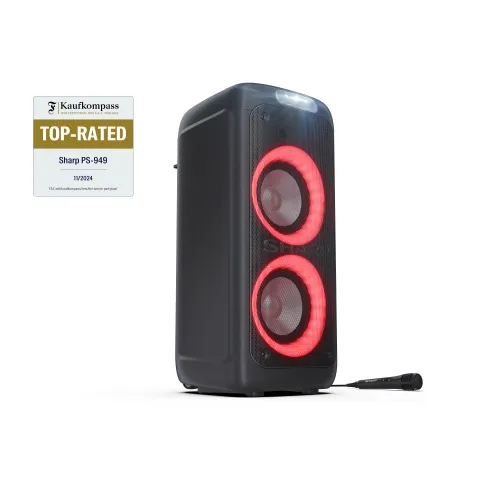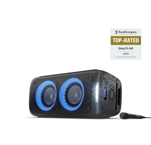 SHARP PS-949 XParty STREET BEAT — Портативная вечерняя акустика с подсветкой, Bluetooth и DJ-эффектамиSHARP PS-949 – это мощная портативная акустическая система с яркими световыми эффектами и множеством функций для подлинного праздничного настроения. Это устройство предназначено для активного исполь