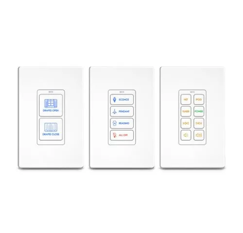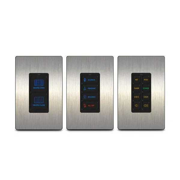 Настенная кнопочная панель. Специализация компании RTI (Remote Technologies Inc.) - системы автоматизированного управления аудио/видео устройствами и прочим электронным оборудованием. 2 или 4 или 8 кнопочный универсальный контроллер пользовательская RGB подсветка, 64 кБ память, USB порт, передача ИК