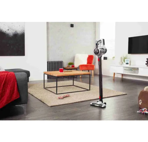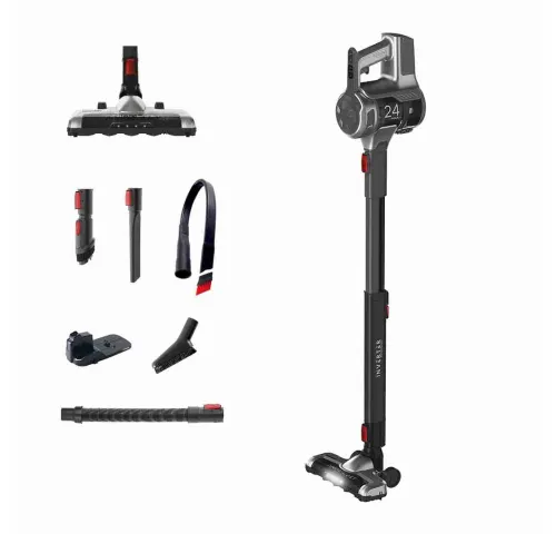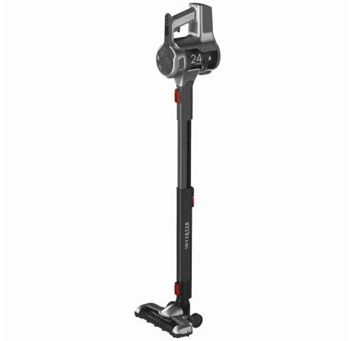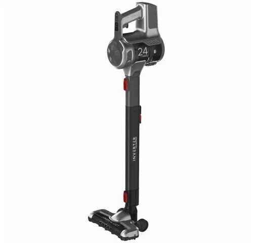 ХарактеристикиТип: беспроводной вертикальный пылесосЦвет: черный/серебристыйПитание: аккумуляторноеНоминальное напряжение: 24 ВЕмкость аккумулятора: 2500 мАчВремя работы: до 60 минВремя зарядки: 210 минУровень шума: 76–82 дБОбъем пылесборника: 0.65 лФильтр: HEPA (EPA E12), моющийсяРегулировка мощности: ручноеМасса: 2.65 кгРазмеры (В×Ш×Г): 110×25×17 смДисплей: LCD