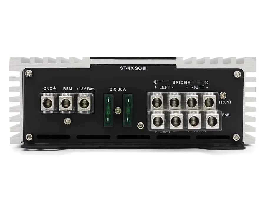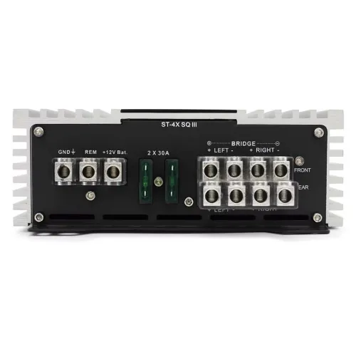 Zapco ST-4X SQ III — это четырёхканальный усилитель класса A/B, созданный для систем, где важны натуральность звучания, высокая детализация и стабильная работа при любых нагрузках. Конструкция корпуса из алюминия улучшает теплоотвод и обеспечивает надёжность при длительной роботі.