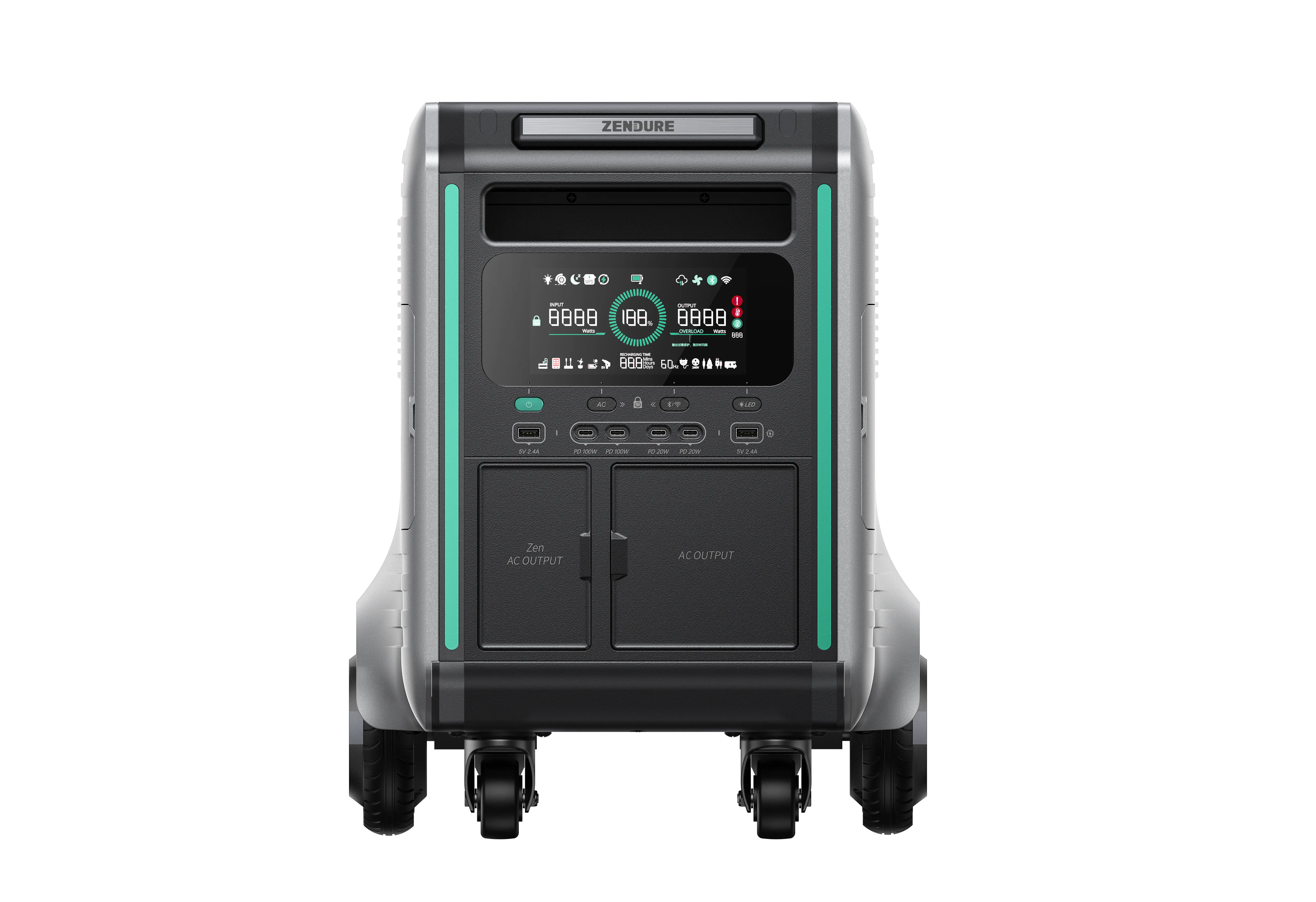 ОписаниеZendure SuperBase V6400 — передовая портативная электростанция, разработанная для обеспечения надежного и масштабируемого энергоснабжения как для домашнего использования, так и для выездов на природу или профессиональных нужд. Благодаря емкости 6,438 Втч и возможности масштабирования до 64 кВтч, эта система способна обеспечить энергией даже самые требовательные устройства и системы.Особенности:Высокая мощность и масштабируемость SuperBase V6400 обеспечивает номинальную мощность 3,800 Вт, с возможностью пиковой нагрузки до 5,000 Вт. При объединении двух таких станций общая мощность достигает 7600 Вт, что позволяет питать большинство бытовых приборов одновременно.Интеллектуальное управление энергией: С помощью приложения Zendure пользователи могут мониторить, управлять и настраивать потребление энергии, оптимизируя затраты и повышая эффективность использования системы.Бесперебойное питание (UPS): Благодаря технологии GridFlow 2.0, станция обеспечивает мгновенное переключение на резервное питание без задержек, что критически важно для чувствительного электронного оборудования.Быстрая зарядка: Станция поддерживает комбинированную зарядку от сети переменного тока и солнечных панелей с максимальной мощностью до 5,900 Вт. При подключении к розетке 240 В она может принимать до 3,600 Вт, обеспечивая полную зарядку за 2 часа.Полутвердые батареи автомобильного класса: SuperBase V6400 оснащена полутвердыми батареями с энергетической плотностью более 228 Вт·ч/кг, что на 42% больше по сравнению с традиционными литий-железо-фосфатными батареями. Это обеспечивает длительный срок службы и высокую надежность системы.Моторизованные колеса для удобной транспортировки: Задние колеса с моторизованным приводом облегчают перемещение станции даже на наклонных поверхностях, обеспечивая настоящую портативность.