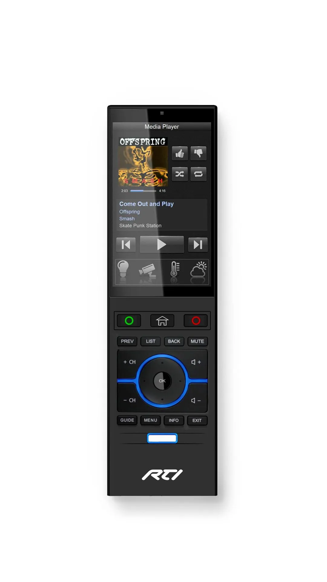 20 аппаратных кнопок обеспечивают быстрый доступ к часто используемым функциям управления, таким как освещение, музыка, выбор источника аудио / видео без необходимости перемещаться по графическому интерфейсу на сенсорной панели.