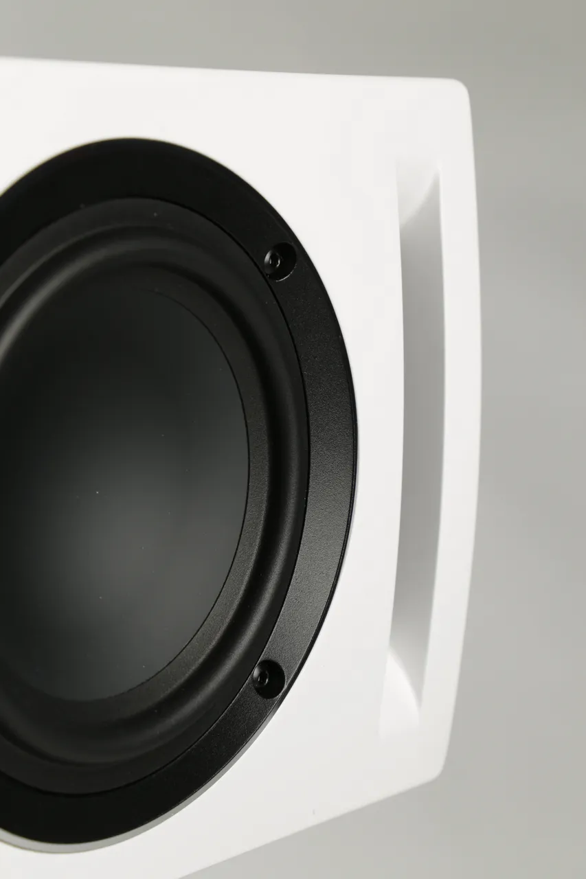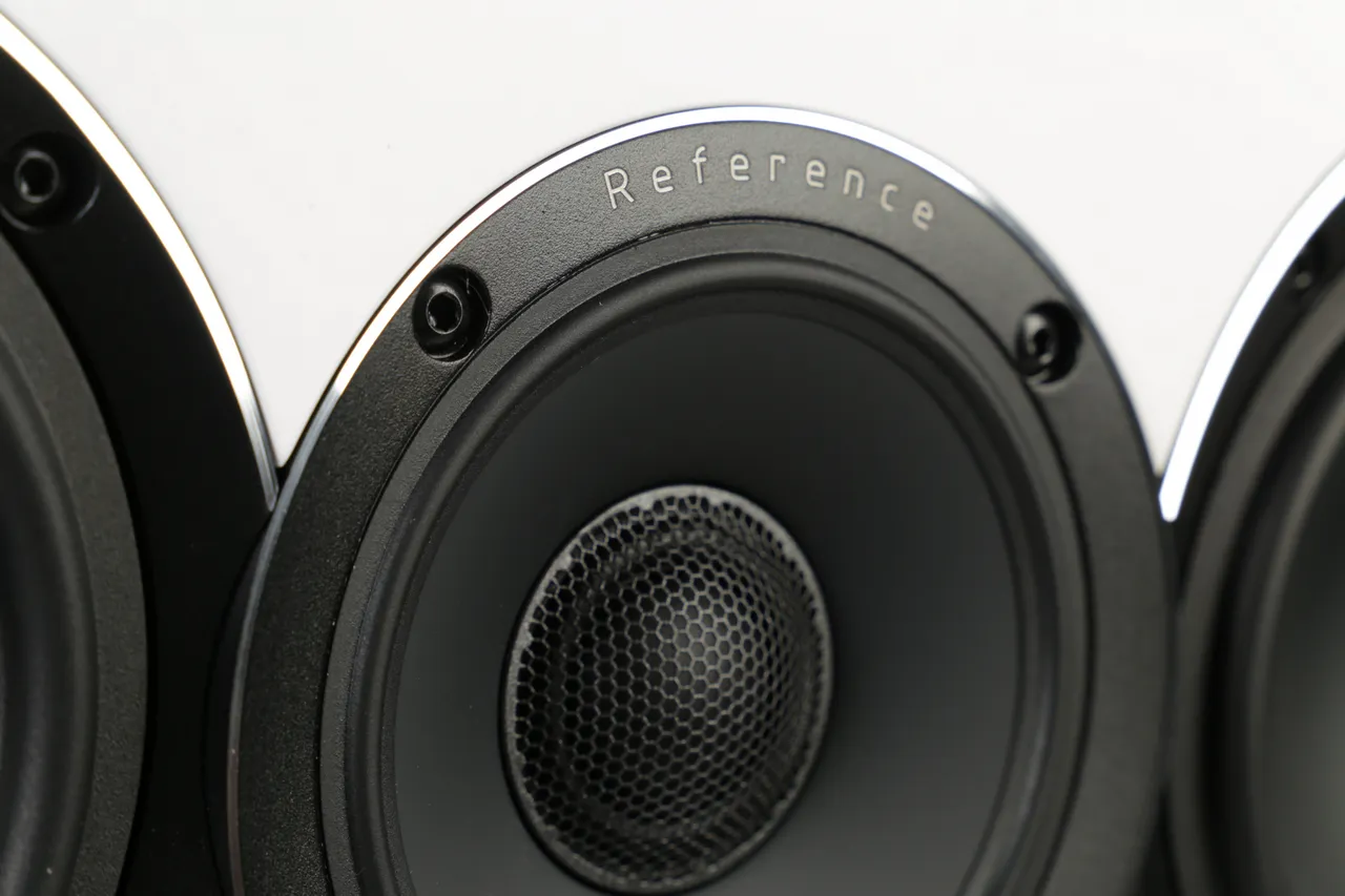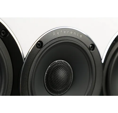 На фронтальной панели колонки по обеим сторонам от концентрического излучателя смонтировано два 5,25-дюймовых НЧ-динамика. Басовики нагружены на щелевые фазоинверторы, которые также находятся по обеим сторонам передней панели. При сравнительно компактных размерах, благодаря оптимально рассчитанной конструкции ELAC Uni-Fi Reference UCR52 обладает напористым и динамичным звуком. Тональный баланс этой колонки полностью согласован с напольными UFR52 и таким образом будет достигнута убедительная фронтальная звуковая сцена с натуральным перемещением образов.