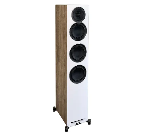 Колонки оснащены новыми динамиками и имеют трехполосную конфигурацию. Излучатели для средних и высоких частот объединены в единую конструкцию — коаксиальный драйвер. Он состоит из закрытого защитной сеткой 1-дюймового твитера с мягким куполом, который помещен в центр 4-дюймового среднечастотного динамика. Диффузор последнего выполнен из алюминия и обладает небольшим весом и высокой жесткостью. Такая конструкция обеспечивает равномерную диаграмму направленности в наиболее критичном частотном диапазоне. Кроме того, диффузор СЧ-динамика служит своеобразным рупором для твитера, что повышает эффективность работы последнего. И, наконец, объединение двух динамиков позволило уменьшить высоту колонки — теперь будет проще найти ей место в интерьере.