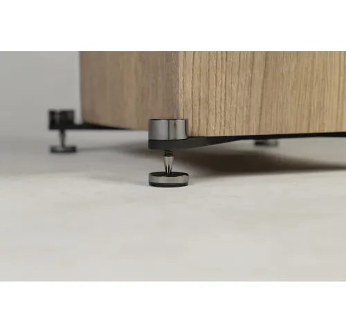 В модели ELAC Uni-Fi Reference UFR52 установлено три басовых динамика диаметром 5,25 дюйма, благодаря чему удалось получить глубокие низкие частоты при сохранении узкого профиля колонки. Динамики подключены к новому разделительному фильтру, изготовленному из отборных компонентов. ELAC Uni-Fi Reference UFR52 имеют две пары входных винтовых клемм. Для нагрузки драйверов служит щелевой фазоинвертор, расположенный в самом низу передней панели. Такое решение сделало распространение басов в комнате наиболее равномерным, а также позволяет ставить колонки довольно близко к стене. С боков отверстие фазоинвертора имеет покатую форму (в компании ее называют «клеш»), что позволило устранить возможные акустические шумы.