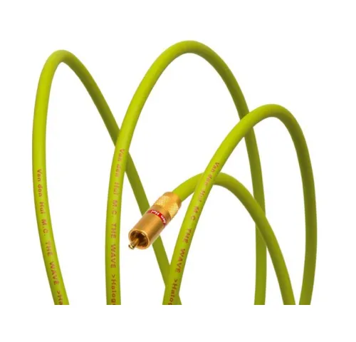 Производством межблочного кабеля The Wave компания Van Den Hul (Нидерланды) отметила 25-летие собственной экологической программы GreenCare, гарантирующей, что ни один кабель Van Den Hul не оказывает негативного воздействия на окружающую среду. Тщательно подобранные материалы и сбалансированный дизайн кабеля обеспечивают характеристики, превосходящие свою ценовую категорию. Благодаря стабильному сопротивлению 75 Ом, точно выдерживаемому по всей длине, The Wave может использоваться для передачи не только аналоговых аудиосигналов, но и цифровых сигналов S/PDIF или композитного видео. Сигнальная моножила кабеля Van Den Hul The Wave сечением 0,64 мм² выполнена из бескислородной меди с согласованной кристаллической структурой (Matched Crystal OFC) и плотным покрытием из серебра и заключена в диэлектрик из вспененного полиэтилена. Благодаря такой конструкции обеспечивается широкая полоса пропускания частот и низкие потери сигнала. Тройной экран из двух слоев плотной оплётки из посеребренной меди MC OFC, разделенных тонким слоем алюминиевой фольги, гарантирует эффективное подавление помех и высокую электропроводность. Внешняя оболочка изготовлена из инновационного безгалогенного материала HULLIFLEX®, который в 3 раза превосходит ПВХ по механической стабильности и обладает повышенной гибкостью, прочностью, устойчивостью к химическому, температурному воздействию и старению.