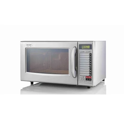 ОписаниеОписание профессиональной микроволновки SHARP S1282AE:Профессиональная микроволновка SHARP S1282AE объемом 28 литров из нержавеющей стали станет незаменимым помощником в любой профессиональной кухне. Современный дизайн с матовым стальным финишем и серебристым цветом корпуса не только выглядит элегантно, но и гарантирует легкую очистку и долговечность.Технические особенности:Объем: 28 литров – достаточно простора для больших порций и профессионального использования.Мощность микроволн: 1000 Вт с 11 уровнями регулировки, обеспечивая гибкость для кулинарных задач.Функции: Система Express Defrost для быстрой разморозки и опция удвоения количества пищи для эффективного приготовления больших порций.Управление Цифровое управление с LCD дисплеем, что делает прибор интуитивно понятным и легким в использовании.Программирование: 20 программируемых пресетов, обеспечивающих точность и консистенцию приготовления блюд.Камера: Плоское дно без поворотного стола для оптимизации пространства и удобства очистки.Дверца: Двухфункциональная ручка дверцы обеспечивает легкий доступ.Материалы: внутри и снаружи печь изготовлена из нержавеющей стали, что обеспечивает долговечность и простоту в уходе.Безопасность Сертификация CE гарантирует соответствие европейским стандартам безопасности.Дополнительная информация:Энергопотребление: Работает от сети AC 230V ~ 50Hz с максимальной мощностью потребления 1600 Вт и низким уровнем потребления в режиме ожидания менее 1 Вт.Размеры: Внешние габариты составляют 520 x 309 x 424 мм, в то время как размер камеры составляет 351 x 211 x 372 мм.Вес: Вес брутто – 21 кг, что делает печь стабильной и надежной на профессиональной кухне.