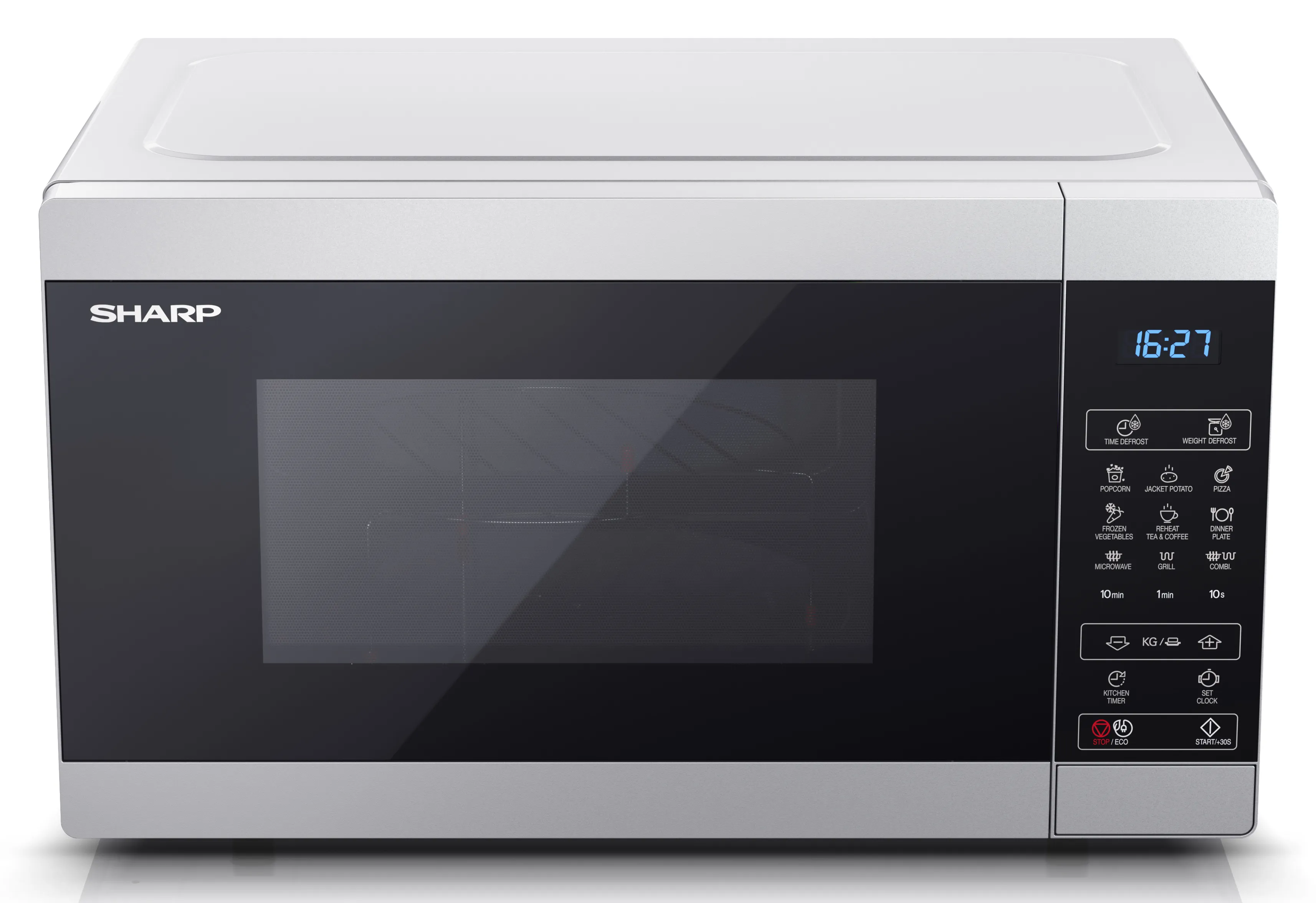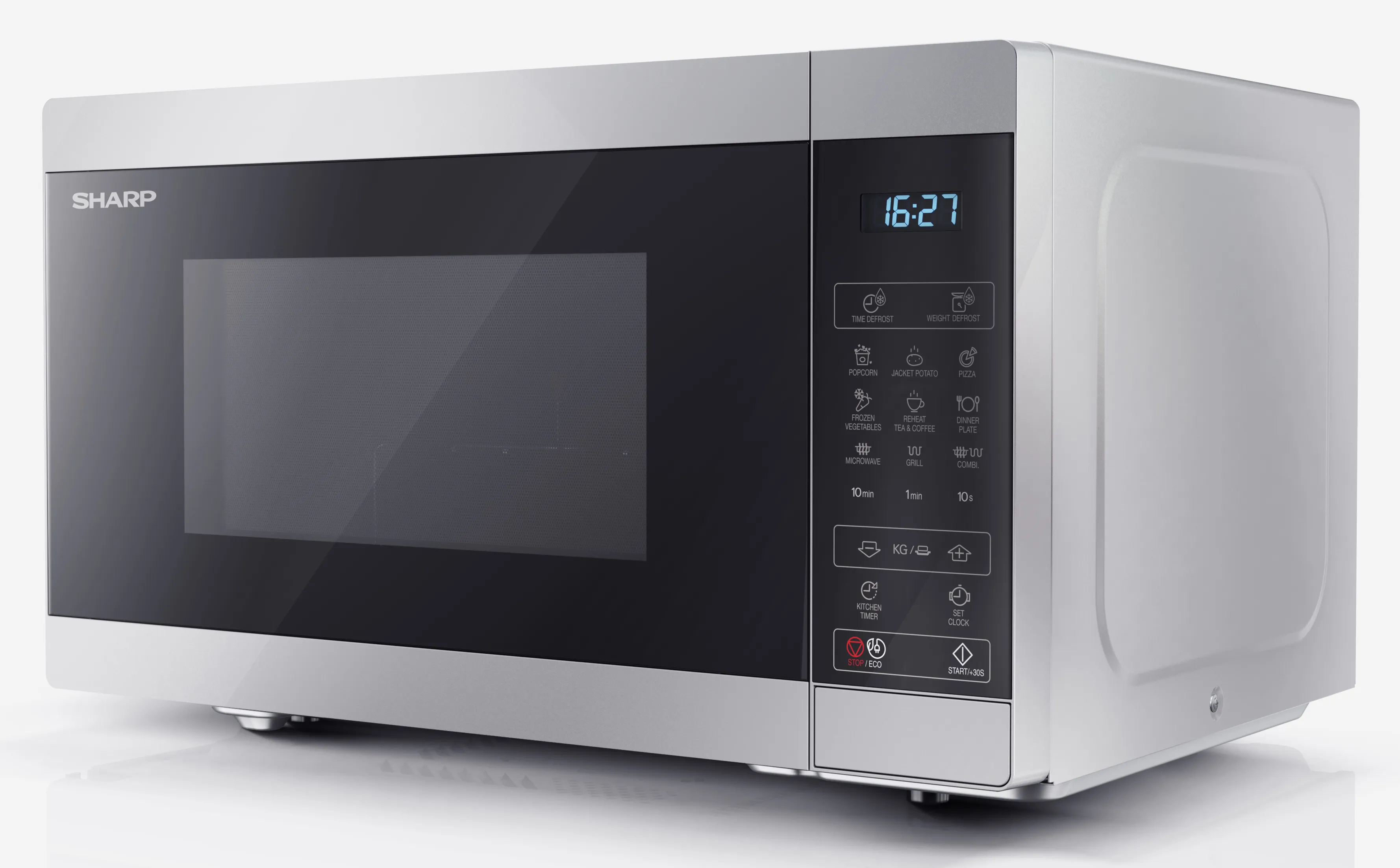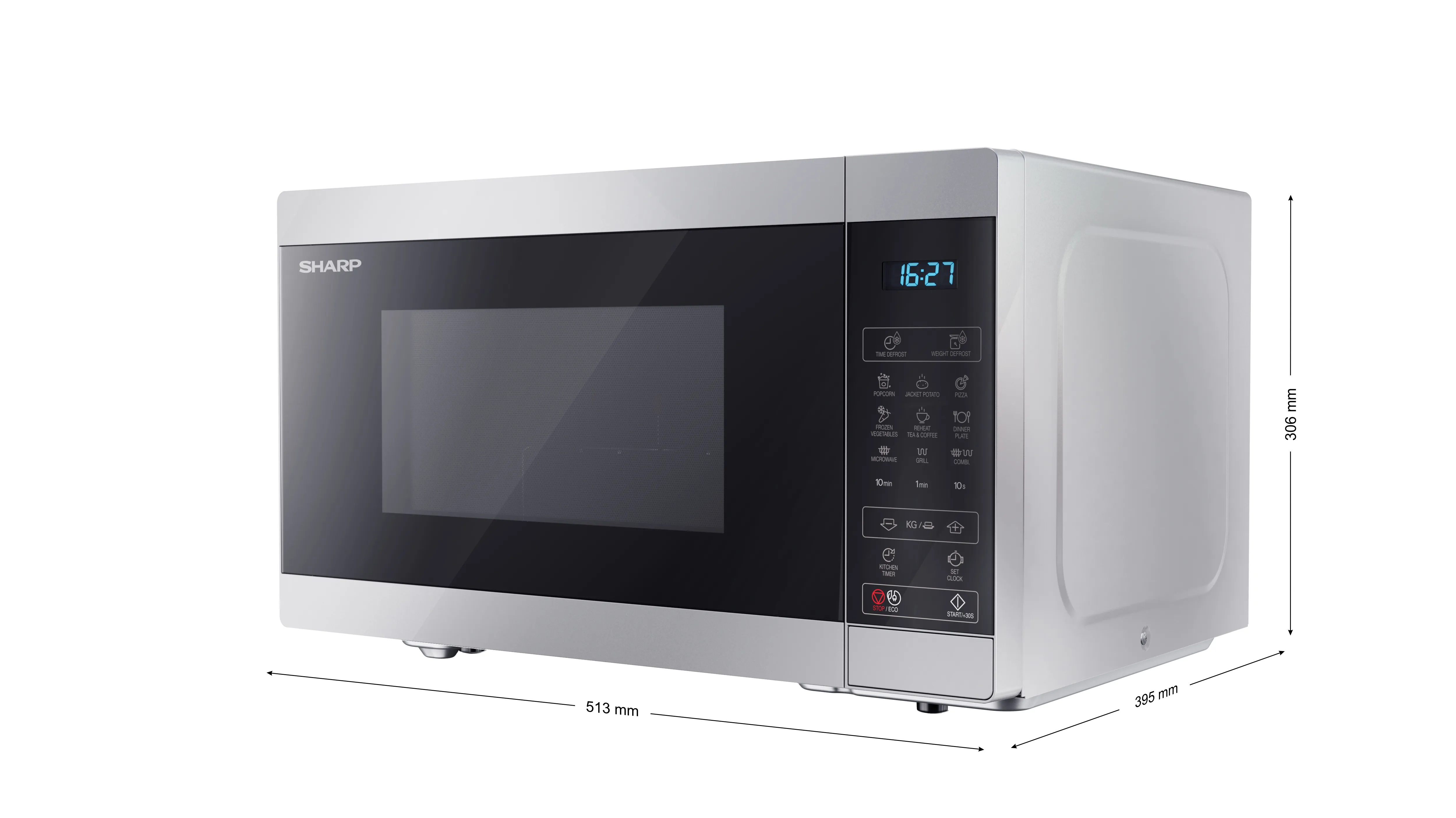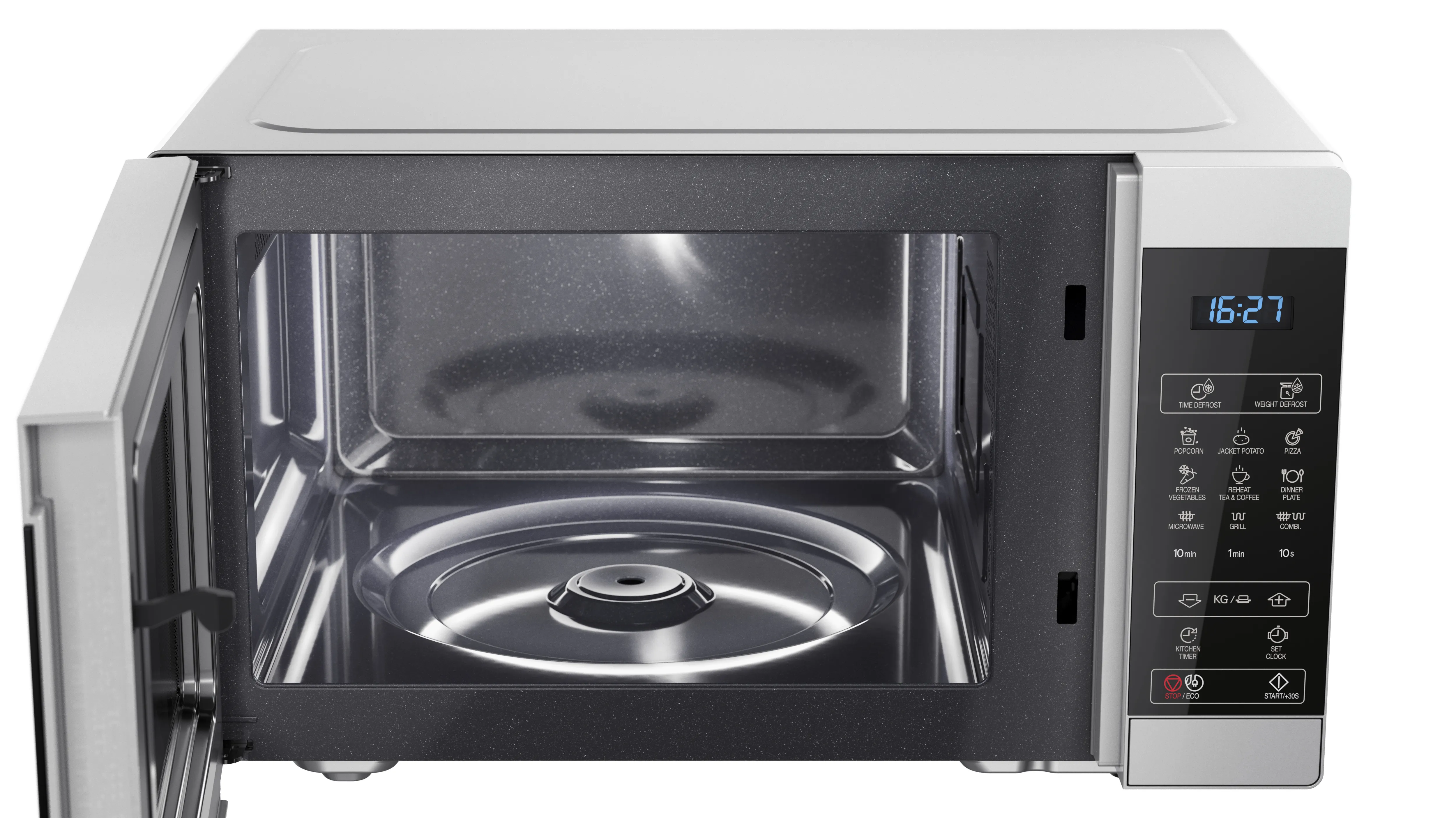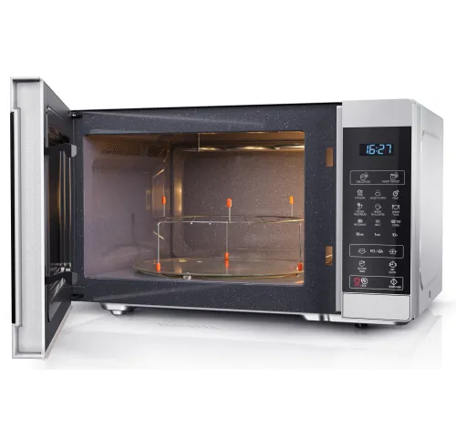 ХарактеристикиЕмкость: 28 литровМощность микроволн: 900 Вт.Мощность гриля: 1100 Вт.Уровни мощности микроволн: 11Тип управления: Полностью цифровоеТип камеры: Поворотный столОсвещение камеры: ДаМатериал/покрытие камеры: Сталь с керамически эмалированным покрытиемРазмеры камеры (Ш x В x Г, мм): 348 x 226 x 356Размер стеклянного поворотного стола (диаметр, мм): 315Размер решетки гриля (Диаметр x Высота, мм): 280 x 38/95Материал/покрытие передней панели: Пластик и стекло, крашеныеЦвет передней панели и корпуса: Серебристый с черным.Способ открытия: КнопкаЦвет корпуса: СеребристыйЦвет LED дисплея: СинийМатериал корпуса: Микроволновая сталь.Потребности в энергии: AC 230V ~ 50HzПотребляемая мощность (Вт): 1450Потребление энергии в режиме ожидания (Вт): < 1.0Тип вилки: CE вилкаСертификация безопасности: CE (EMC, LVD, RoHS, ErP), REACh/PAH/SCCPРазмеры устройства (Ш x В x Г, мм): 512 x 300 x 396Размеры упаковки (Ш x В x Г, мм): 586 x 374 x 471Вес брутто(кг): 18
