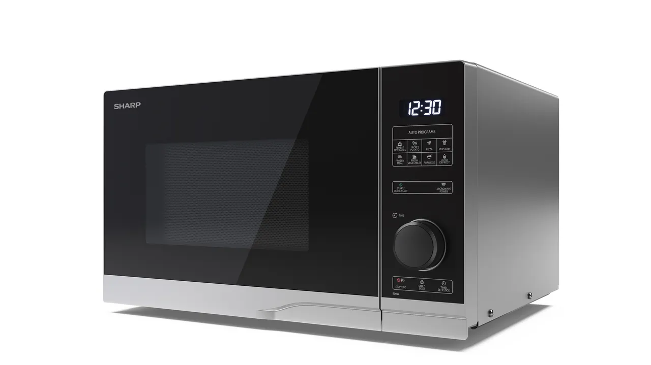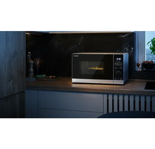 ХарактеристикиЕмкость: 25 литровМощность микроволн: 900 Вт.Уровни мощности микроволн: 10 (10%, 20%, 30%, 40%, 50%, 60%, 70%, 80%, 90%, 100%)Тип управления: ПолуцифровойТип внутренней полости: Поворотный столикМатериал внутренней полости: Серо окрашенРазмер внутренней полости (Ш x В x Г): 340 x 220 x 344 ммРазмер стеклянного поворотного столика (диаметр): 270 мм.Освещение полости: LEDФункция детского замка: ДаЭкологическая функция (ECO): ДаЦвет корпуса: СеребристыйЦвет дверцы: СеребристыйАвтоматические программы: 8, включая размораживаниеТаймер и часы: ДаПотребляемая мощность: 1400 Вт.Потребление энергии в режиме ожидания: 0.7 Вт.Потребление энергии в отключенном режиме: 0.5 ВтЭлектропитание: AC 230V ~ 50HzСертификация безопасности: CE (EMC, LVD, RoHS, ErP), REACh/PAH/SCCPВес (брутто): 15.28 кгГабариты устройства (Ш x В x Г): 483 x 281 x 403 ммДлина сетевого кабеля: 1010 мм.Материал корпуса микроволновки: СтальОткрывание дверцы: Ручка