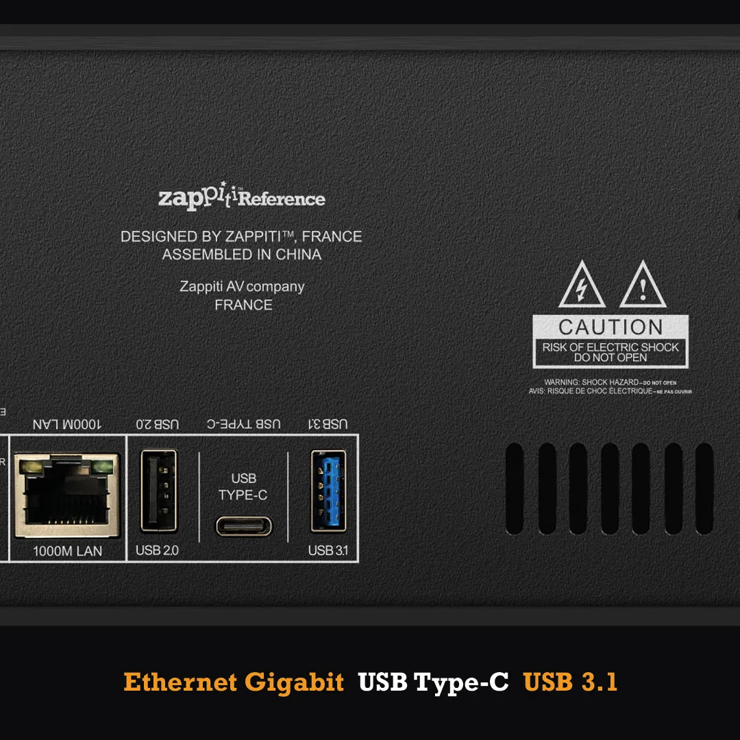 Zappiti Reference поддерживает большинство цифровых аудио- и видеоформатов, включая самые современные стандарты 4K HDR, такие, как Dolby Vision и HDR10+, почти все современные форматы видеофайлов, все функции BD/UHD-меню, видеокодек HEVC с миллиардом цветов (10-битное цветовое кодирование), видеокодек VP9, стандарты 3D-видео с 3D-субтитрами, а также такие аудиофайлы в высоком разрешении, как DSD, FLAC, ALAC или MQA с частотой дискретизации до 352 кГц.