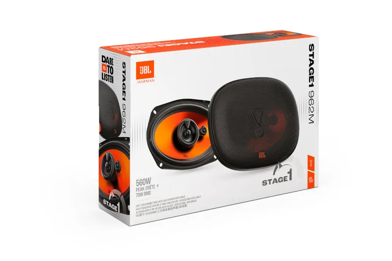 ОписОновіть звучання свого автомобіля з автомобільною акустикою JBL Stage1 962M — це ідеальний варіант для тих, хто шукає якісний звук за доступною ціною. Ці трьохсмугові коаксіальні динаміки з розміром 6x9 дюймів (152x230 мм) забезпечують потужне та насичене звучання, яке значно перевершує заводські аудіосистеми. Інноваційна конструкція дифузора з технологією Plus One™ дозволяє досягти більшої площі випромінювання, що сприяє підвищеній чутливості та глибшому відтворенню низьких частот. В результаті ви отримуєте музику з виразним басом, чистими середніми та деталізованими високими частотами.Акустика розроблена з урахуванням простоти встановлення — Stage1 962M підходить до більшості стандартних місць монтажу без потреби у змінах конструкції авто. У комплекті йдуть захисні сітки, що забезпечують додатковий захист динаміків. Завдяки PEI-купольному високочастотному випромінювачу, Stage1 962M відтворює високі частоти з мінімальними спотвореннями навіть при високих рівнях гучності, що забезпечує комфортне та природне звучання у будь-яких умовах.Ці динаміки пройшли фірмове тюнінгування JBL, що гарантує фірмову якість звучання та сумісність із іншими компонентами лінійки. Вони створені для тривалої експлуатації та витримують високі навантаження, тому чудово підійдуть як для повсякденного використання, так і для вимогливих меломанів, які не готові йти на компроміси у якості звуку.Особливості:Трьохсмугова коаксіальна конструкція для повного спектру звуковідтворенняДифузор з технологією Plus One™ забезпечує підвищену чутливість і кращу басову віддачуPEI купольний твіттер для чистого відтворення високих частотВисока сумісність з більшістю авто — проста та швидка установка без доопрацюваньПотужне звучання з великою гучністю без спотвореньФірмова акустична настройка JBL для збереження автентичного звуку брендуУ комплекті: захисні сітки, монтажний набір та інструкція
