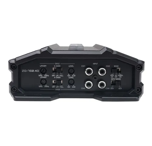 ZD-750.4D здатен видавати 4 x 175 Вт при 2 Ом або 4 x 100 Вт при 4 Ом, а також 2 x 375 Вт у мостовому режимі при 4 Ом, що дає гнучкість у конфігурації: ви можете живити як чотири динаміки, так і два потужні сабвуфери. Надійна PWM MOSFET система живлення забезпечує стабільну роботу підсилювача за будь-якого навантаження, а алюмінієвий радіатор сучасного дизайну гарантує ефективне охолодження навіть при високих рівнях гучності.